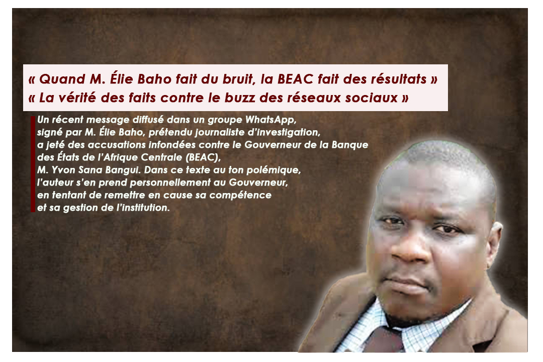 Un récent message diffusé dans un groupe WhatsApp, signé par M. Élie Baho, prétendu journaliste d’investigation, a jeté des accusations infondées contre le Gouverneur de la Banque des États de l’Afrique Centrale (BEAC), M. Yvon Sana Bangui.